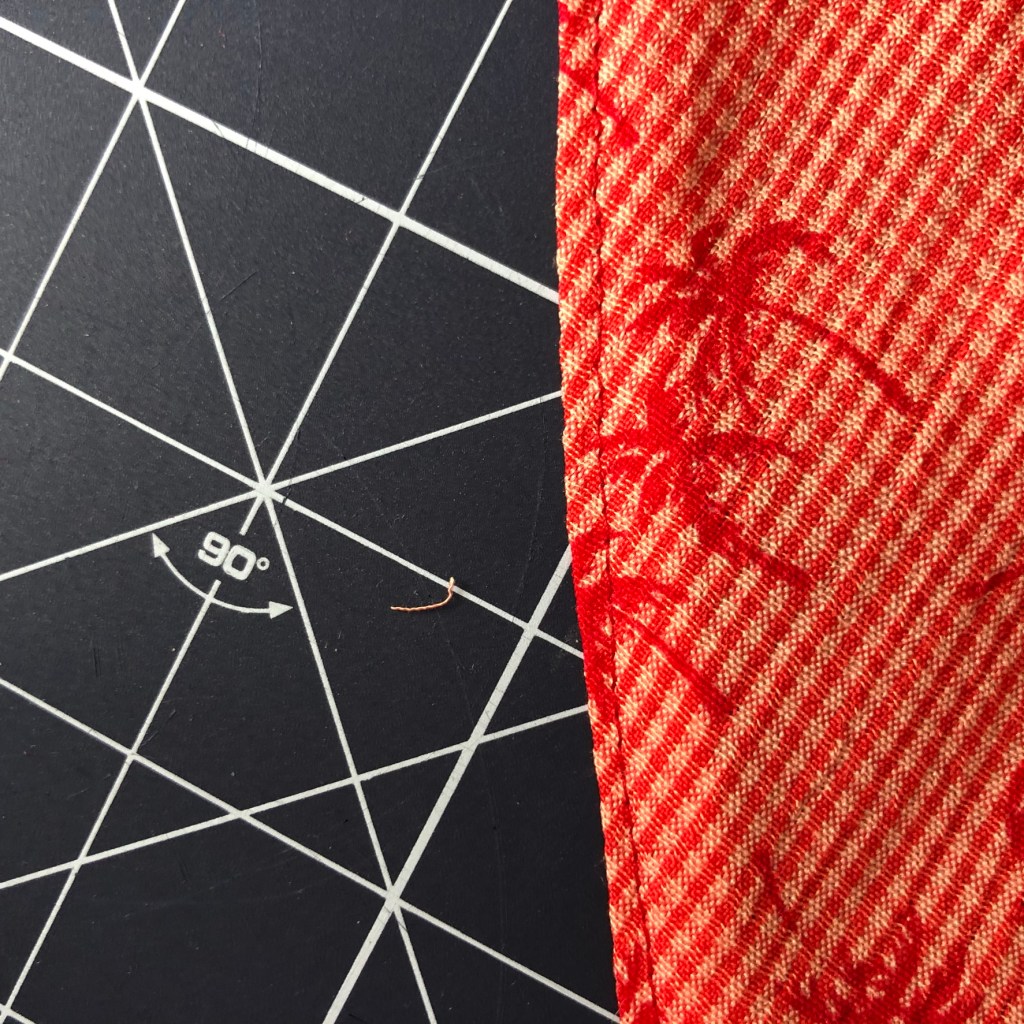 Puis, j’ai surfilé pour éviter que le tissu s’effiloche.