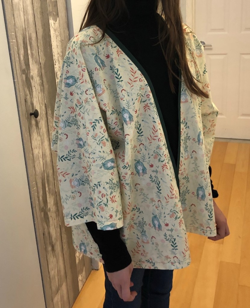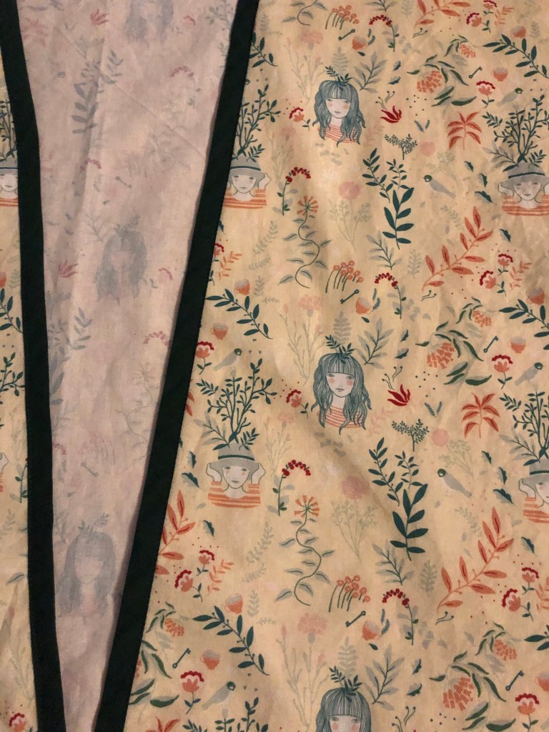 PS: pour les plus expérimentées, vous vous direz peut-être: « Elle a coupé son motif à l’envers »… Mais non! Je l’ai coupé pour que je puisse voir mes petites théières à l’endroit lorsque je porte mes chaussons. 😉