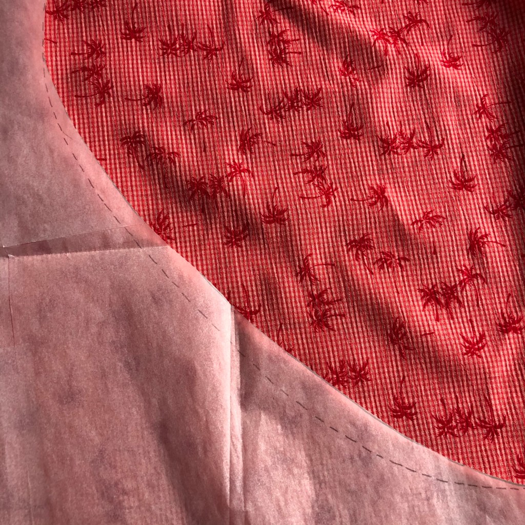 Il faut coudre au point droit. C’est une excellente pratique pour coudre les arrondis! Allez-y lentement et ça se fait vraiment bien.