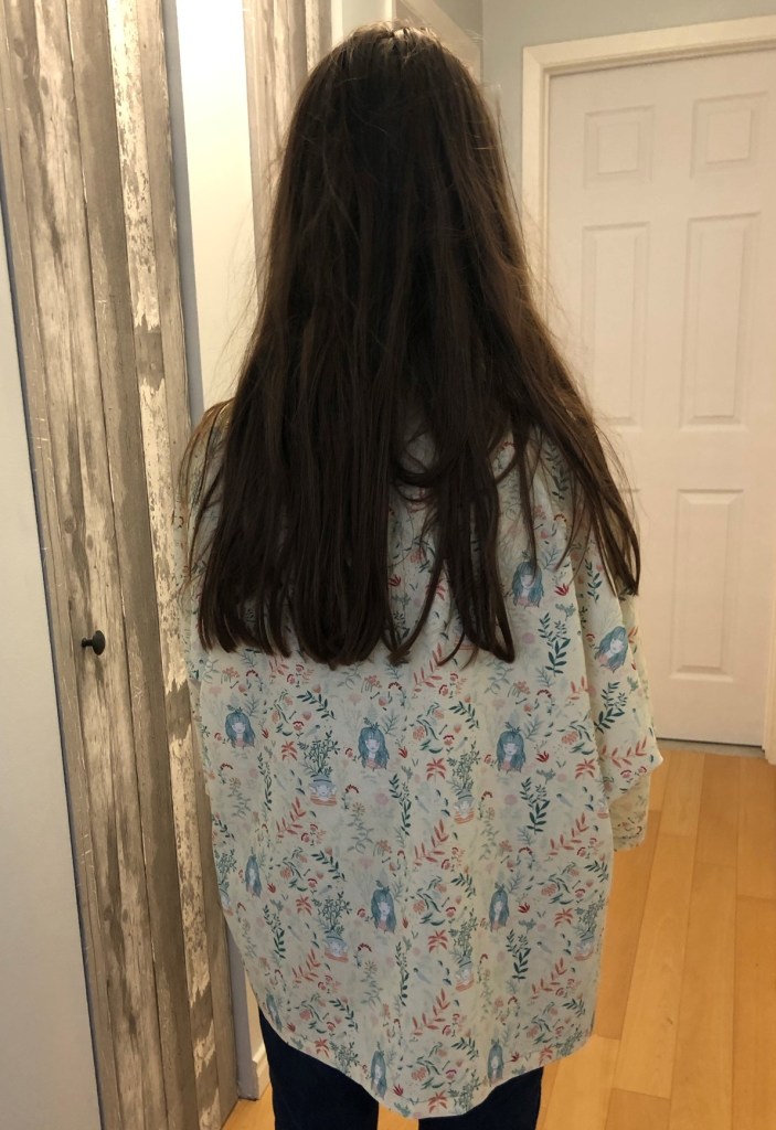Ça a l’air compliqué mais ça ne l’est vraiment pas! Suivez bien les étapes du patron. Et si vous avez cousu votre élastique comme moi, ce sera encore plus facile! Aussi, n’hésitez pas de mettre des épingles. Ça aide beaucoup!
